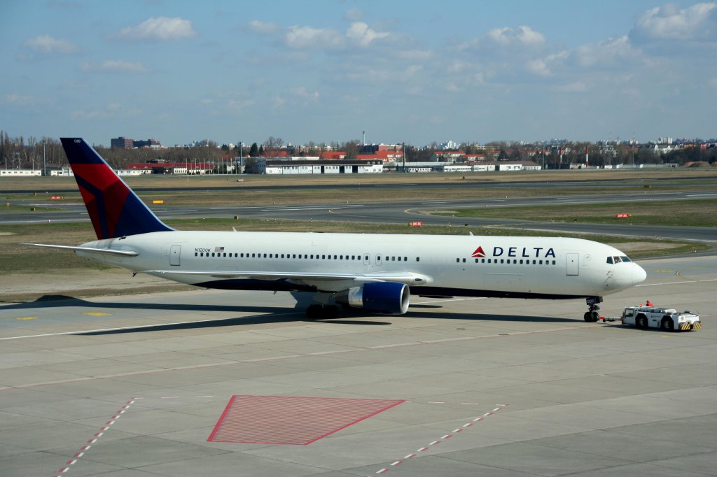 Delta Airlines B 767-332(ER) N1200K beim Puschback auf dem Flughafen Berlin-Tegel am 02.04.2010