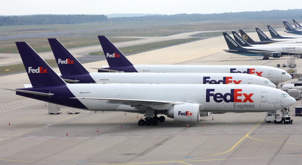 B 777-FS2, N884FD der FedEx und dahinter B 747-44AF N573UP der UPS, in Front einer "Frachterlinie" auf dem Flughafen Köln-Bonn - 21.07.2013 Rolf Reinhardt