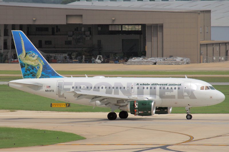N810FR, A318-111, San Antonio IAP KSAT/SAT, 06.09.07, Frontier A318 with reversers working at San Antonio IAP (EOS350D + Sigma 50-500) Friedrich Becker