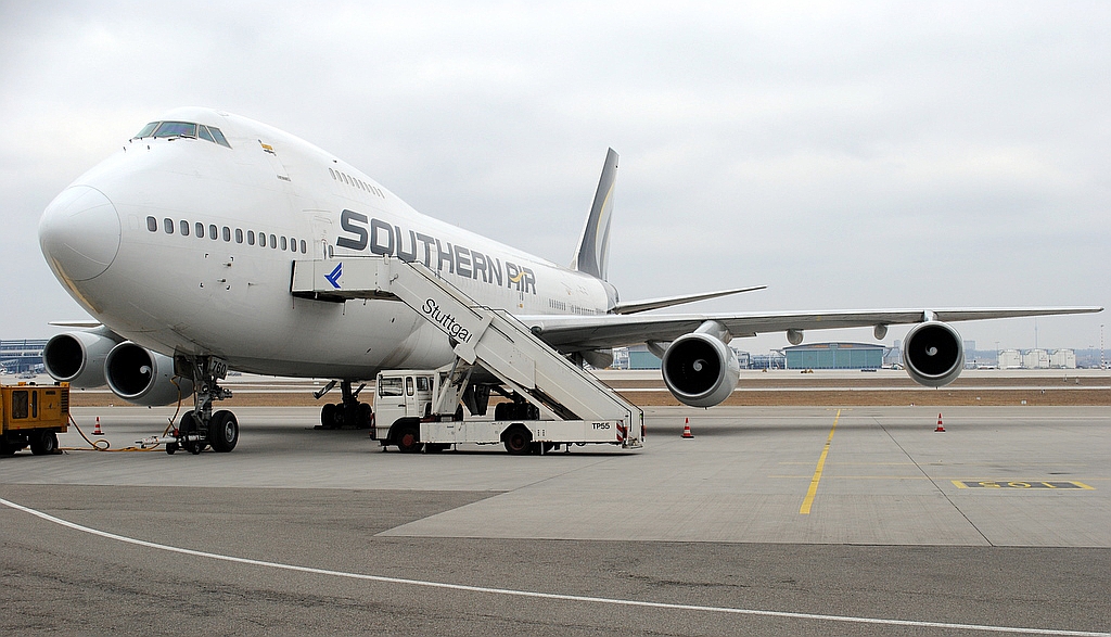 Leider waren über Stuttgart eine dichte Wolkendecke, als die Southern Air-Boeing 747-230F(SCD) N760SA (kommend aus Angola) am 6. März 2011 auf dem Stuttgarter Flughafen landete. Der Grund für den seltenen Besuch: Die Meschine bringt mehrere Autos von Stuttgart aus nach Namibia in Afrika.