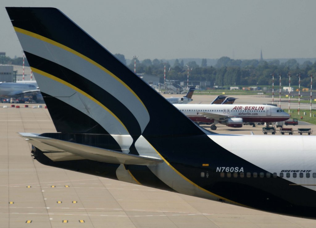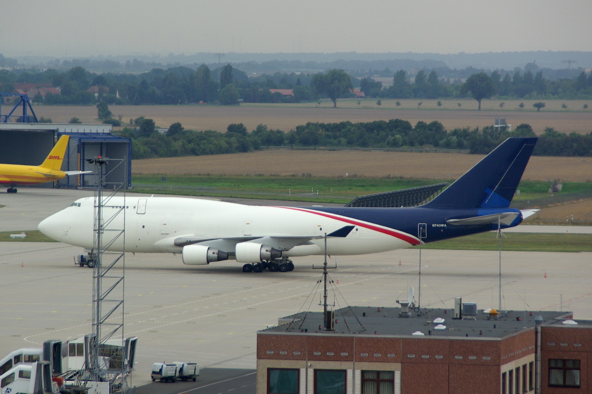 N743WA Southern Air Boeing 747-412 (BDSF) 23.08.2013 Flughafen Leipzig / Halle leider stören die Masten