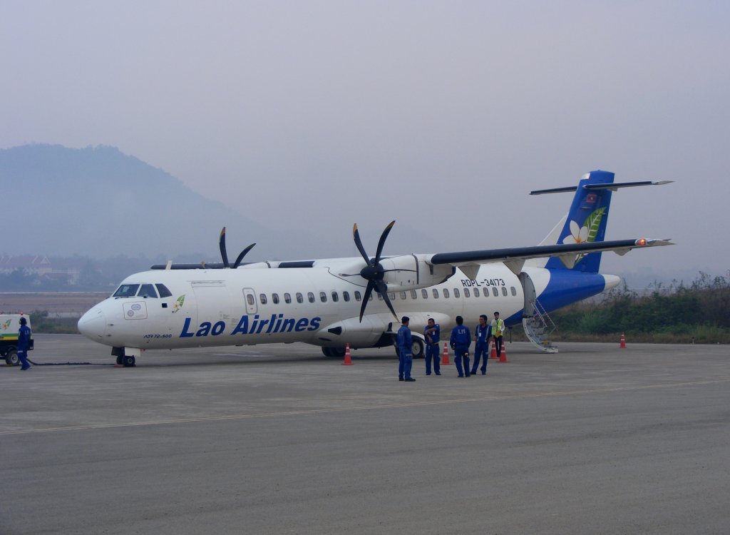 ATR-72-500 RDPL-34173 von LAO AIRLINES auf dem Airport Luang Prabang (LPQ) in Laos am 30.1.2012