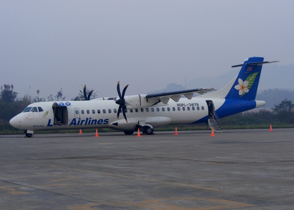 ATR-72-500 RDPL-34176 von LAO AIRLINES auf dem Airport Luang Prabang (LPQ) in Laos am 30.1.2012