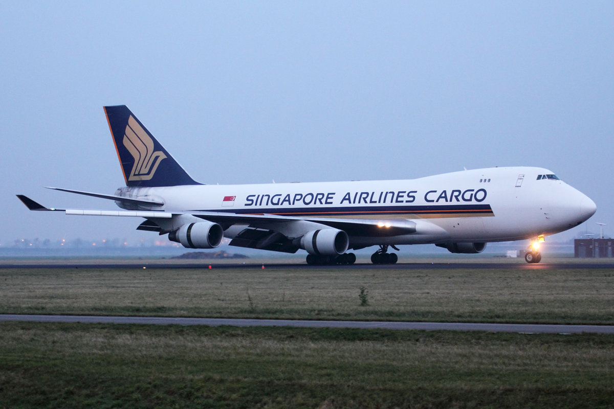 Singapore Airlines Cargo Boeing 747-412F 9V-SFM nach der Landung in Amsterdam 28.12.2019