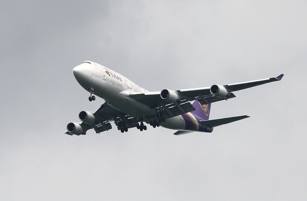 Thai Cargo B 747-4D7(BCF) HS-TGJ bei der Landung in Frankfurt am 09.06.2013