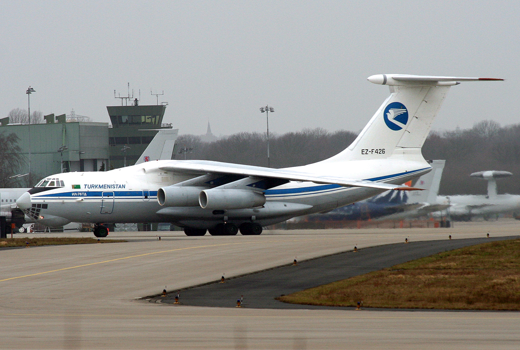 Turkmenistan IL-76TD EZ-F427 verlässt die 27 in GKE / ETNG / Geilenkirchen am 22.08.2008