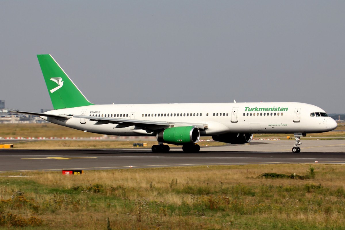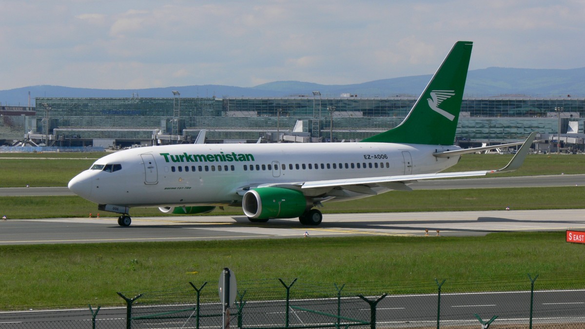 Boeing 737-700 mit der Kennung EZ-006 von Turkmenistan Airlines am 16.08.2013 in Frankfurt.