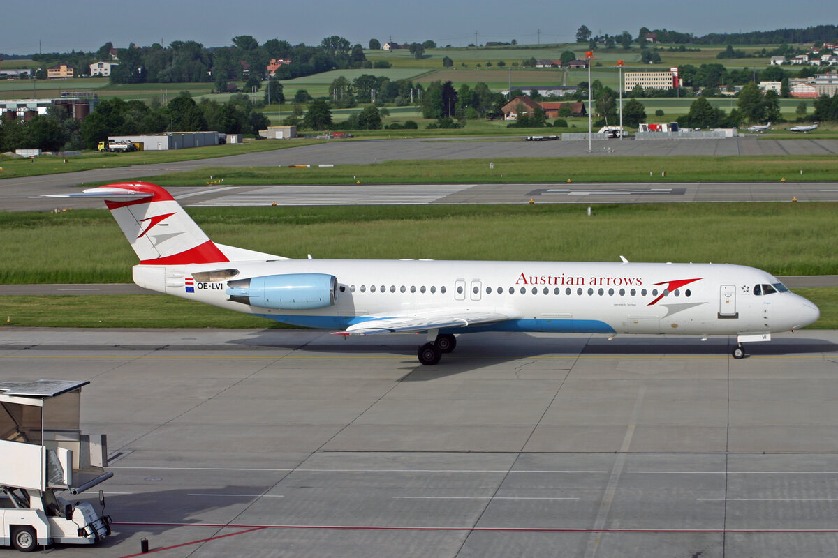 Austrian Arrows, OE-LVB, Fokker 100, msn: 11502,  Vilnius , 18.Juli 2006, ZRH Zürich, Switzerland.