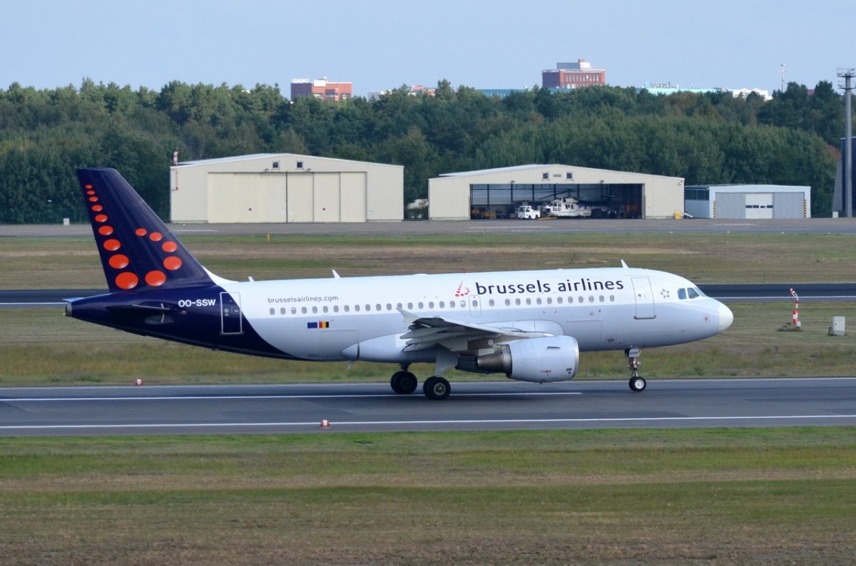 Brussels Airlines A 319-111 OO-SSU nach der Landung in Berlin-Tegel am 11.07.2014