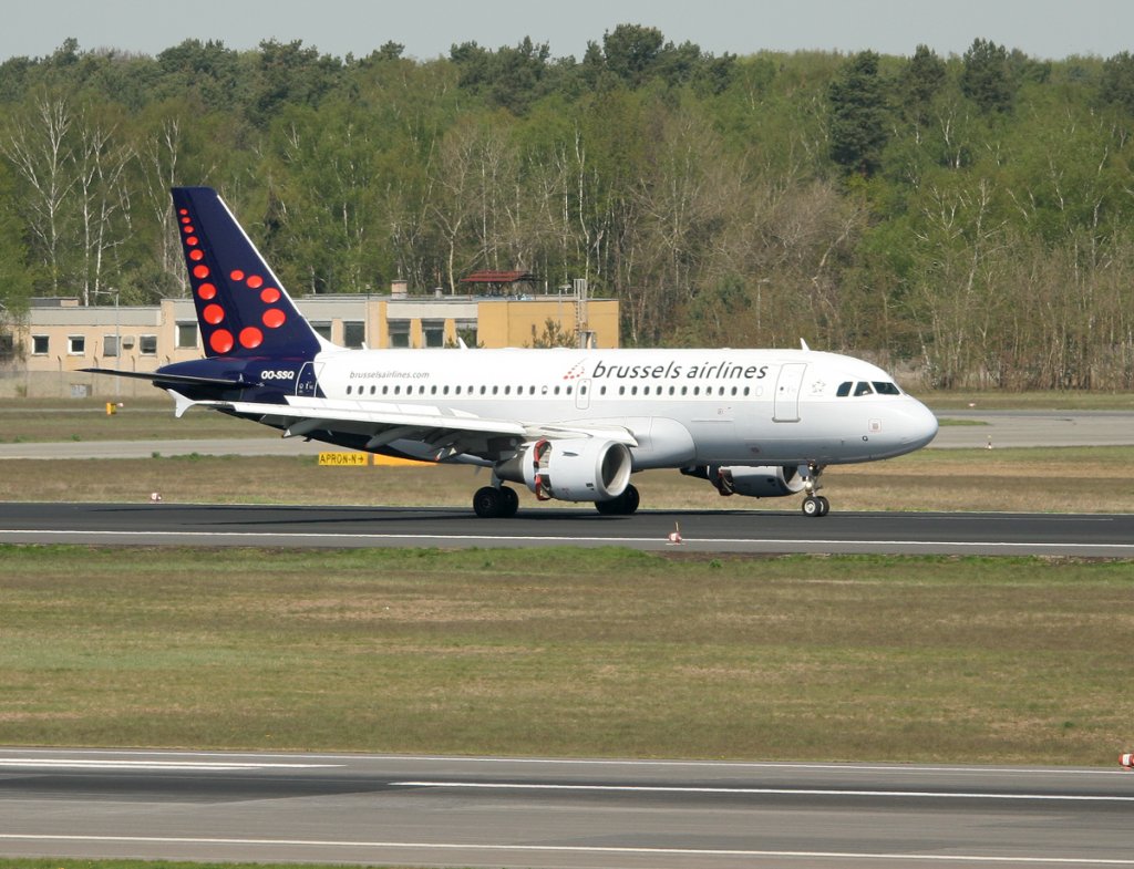 Brusels Airlines A 319-111 OO-SSQ nach der Landung in Berlin-Tegel am 28.04.2012