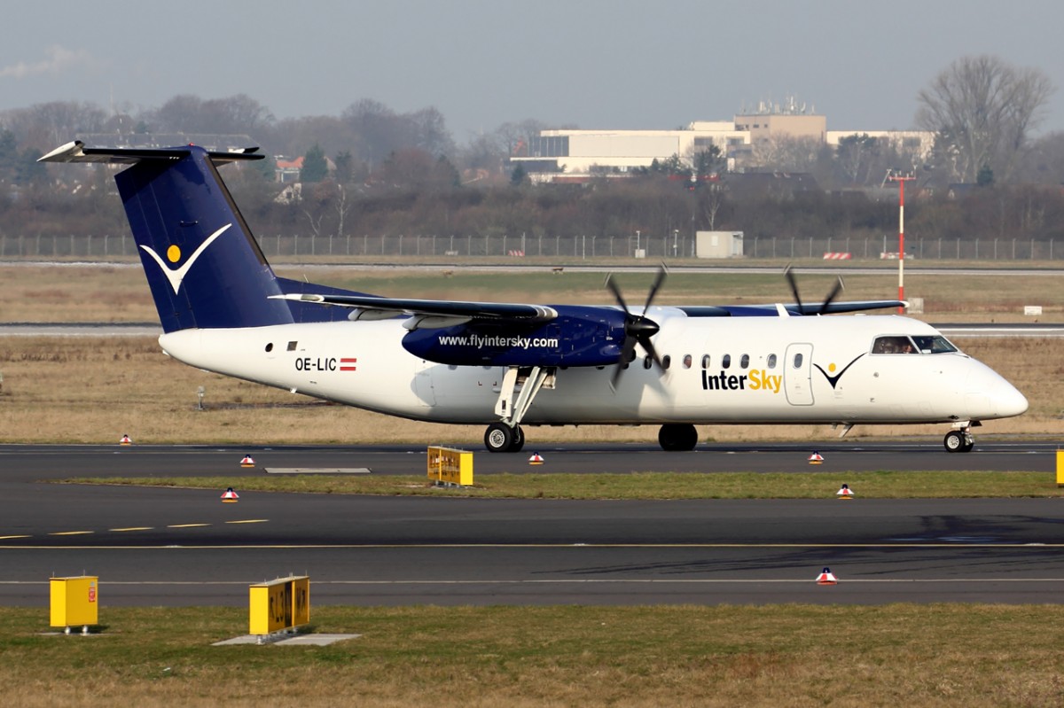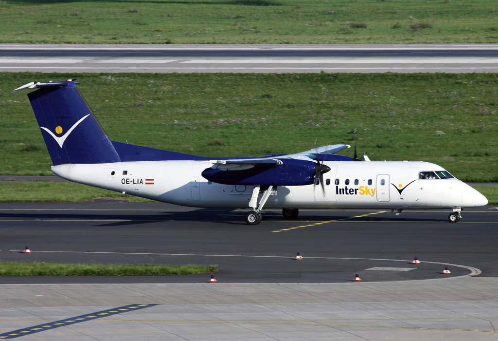 Intersky Dash 8-300 OE-LIA auf dem Taxiway zur 23L in DUS / EDDL / Düsseldorf am 20.08.2014