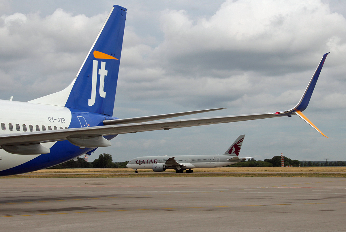 Jettime, Boeing  B 737-8H3, OY-JZP, Qatar Birways, Boeing B 787-9 Dreamliner, A7-BHF, BER-Spottertour, 15.07.2025