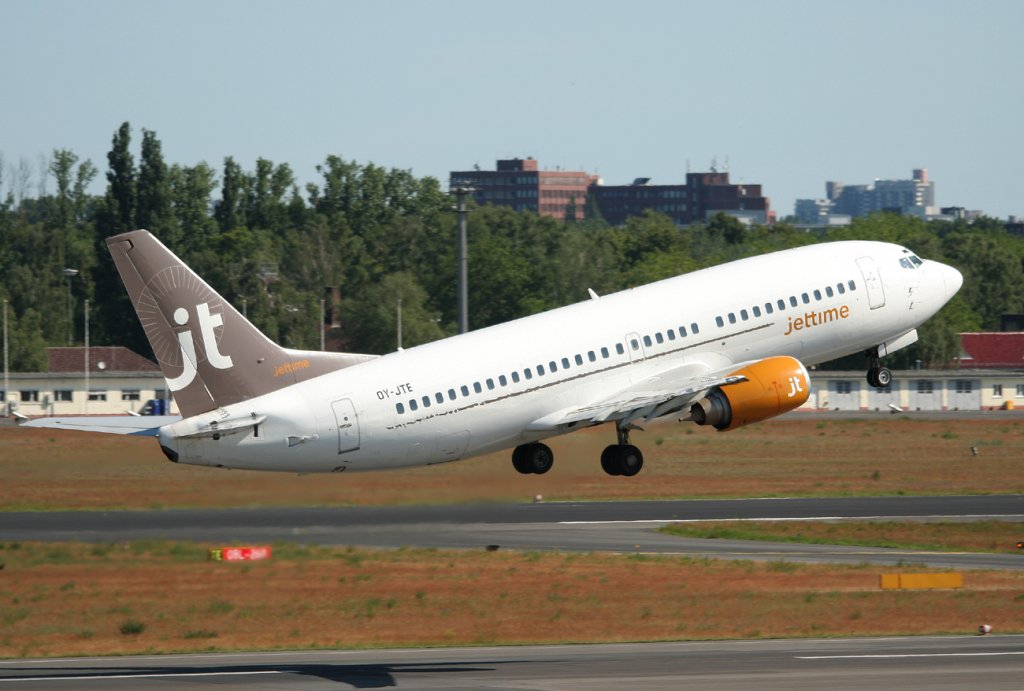 Jettime B737-300 OY-JTE beim Takeoff auf 22R in CPH / EKCH / Kopenhagen am 30.08.2011