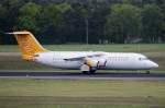 Malmö Aviation RJ100 SE-DSY nach der Landung in Berlin-Tegel am 27.04.2014