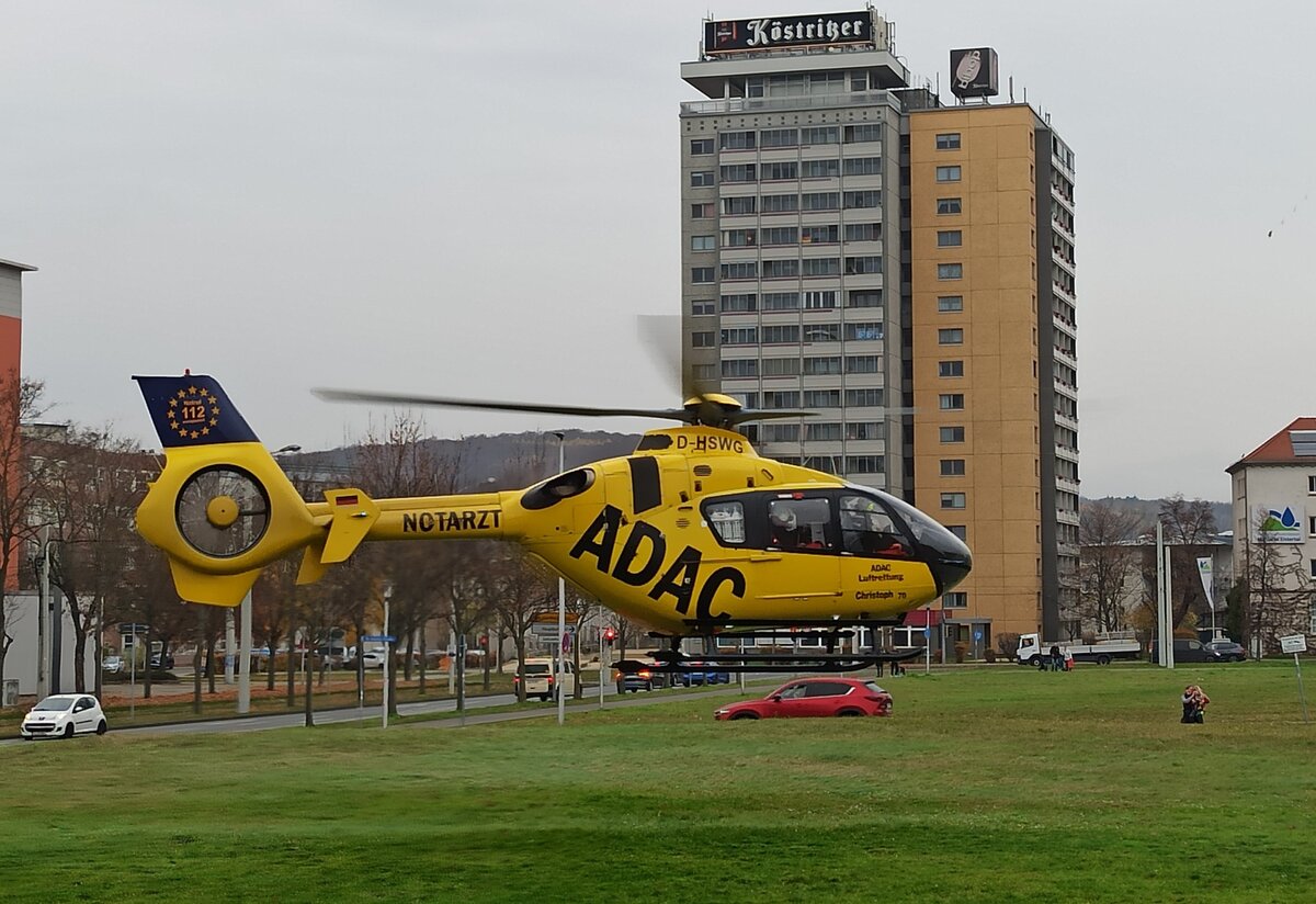ADAC Luftrettung Christoph 70 aus Jena (D-HSWG), Eurocopter EC-135 P2 beim Einsatz in Gera am 15.11.2025