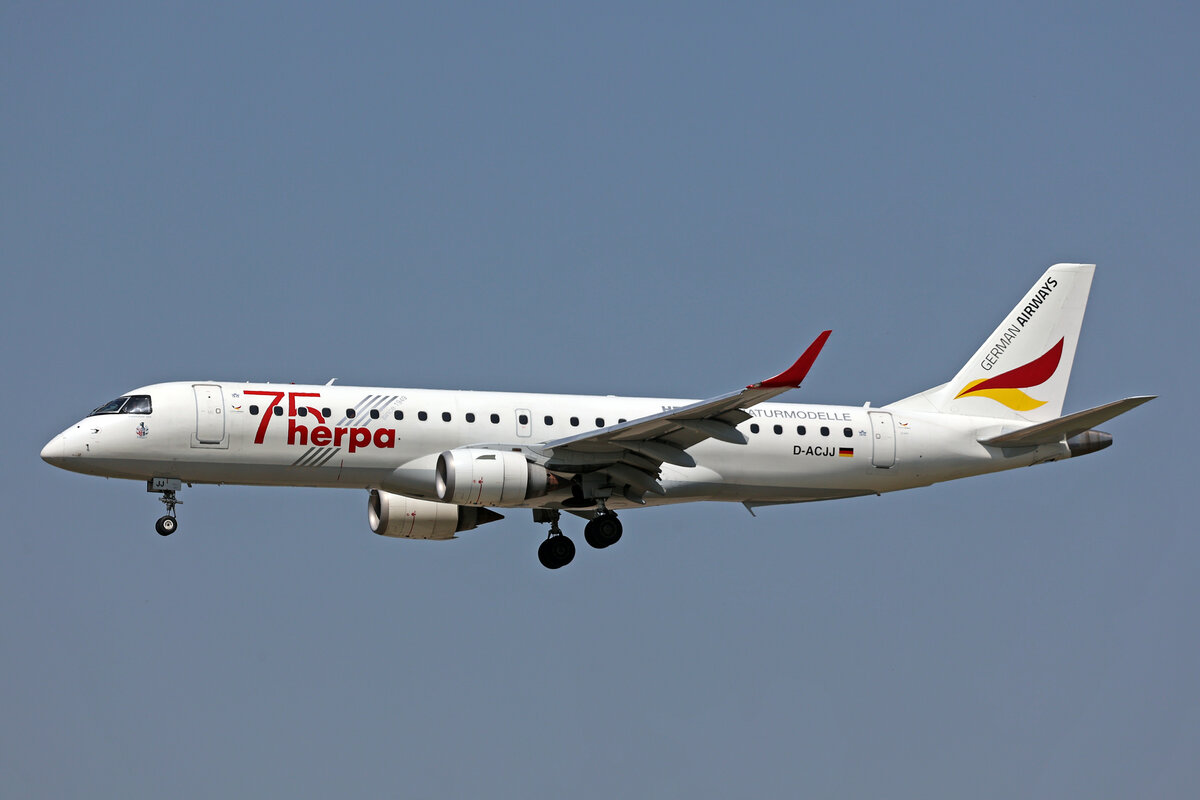 German Airways, D-ACJJ, Embraer ERJ-190LR, msn: 19000114, "Herpa Miniaturmodelle 75 Years", 13.August 2025, FRA Frankfurt, Germany.