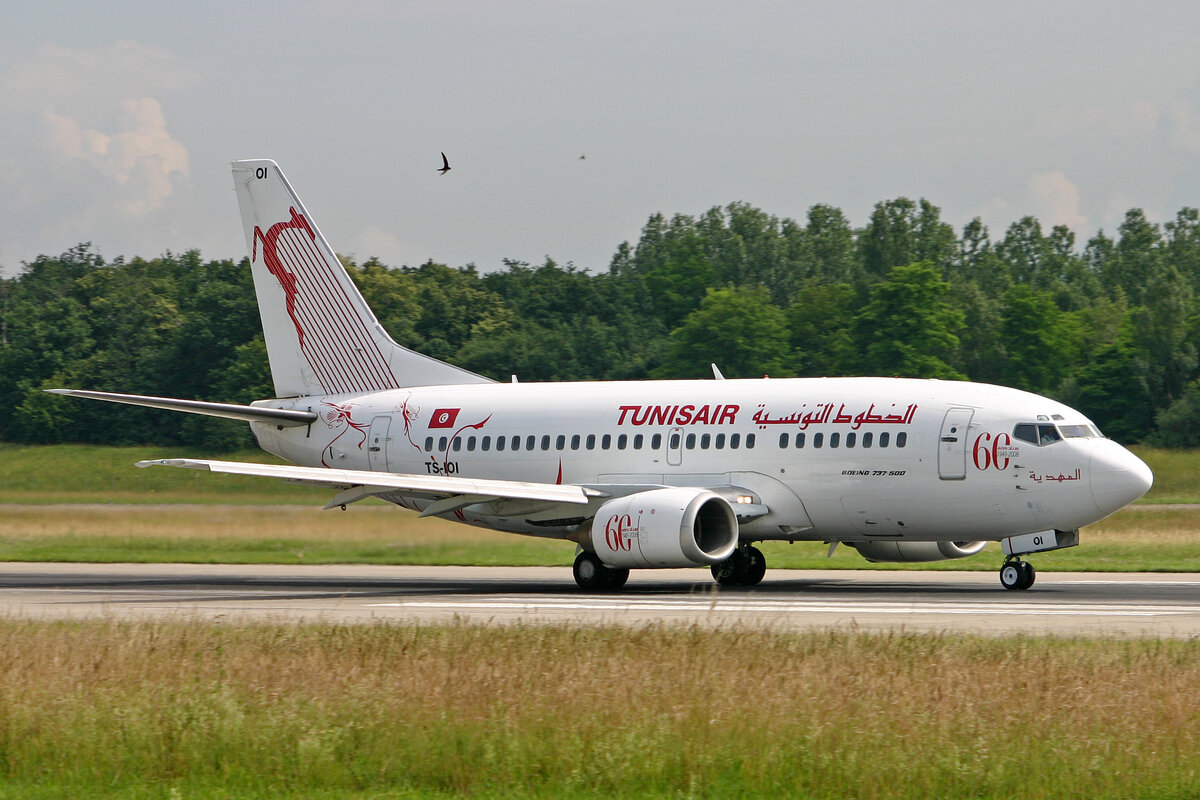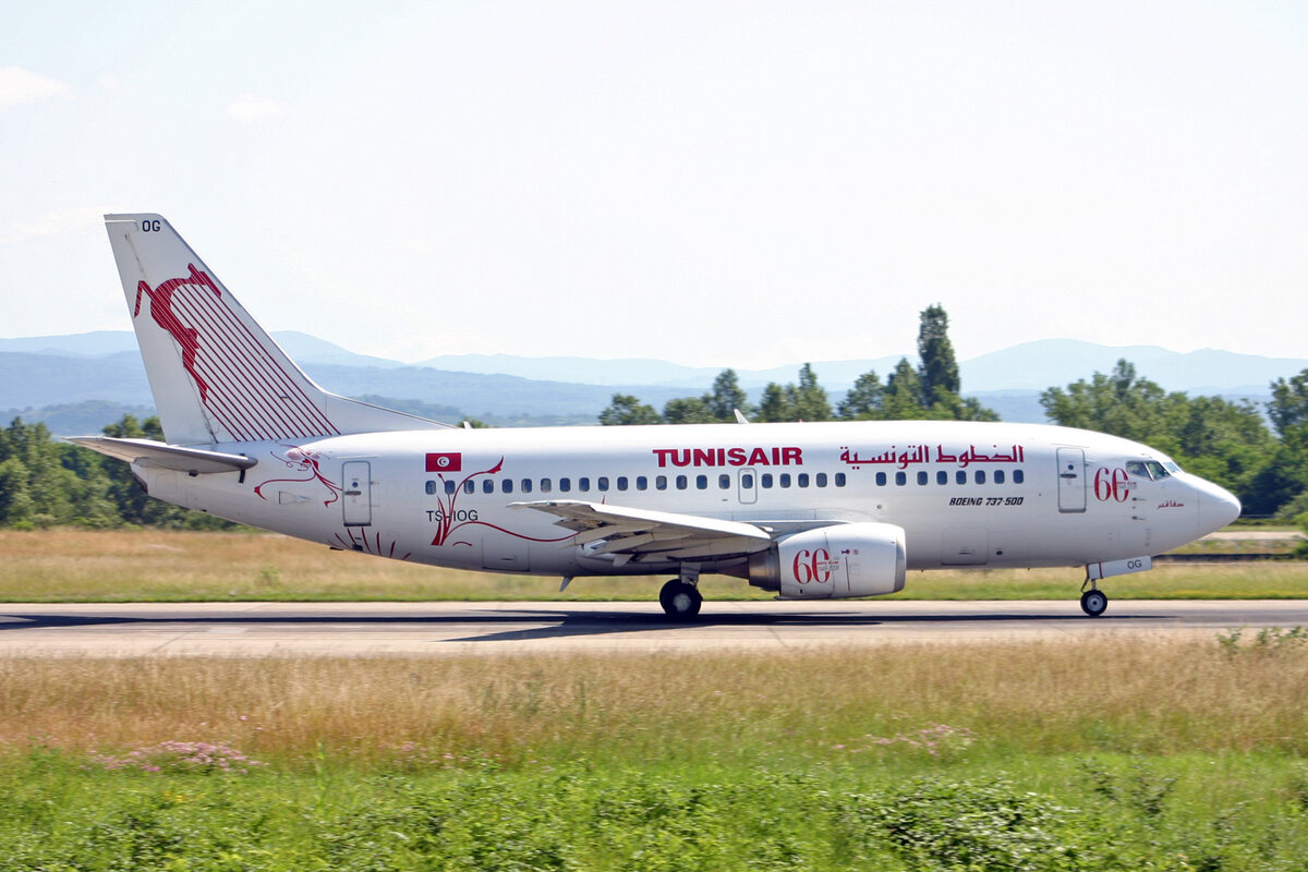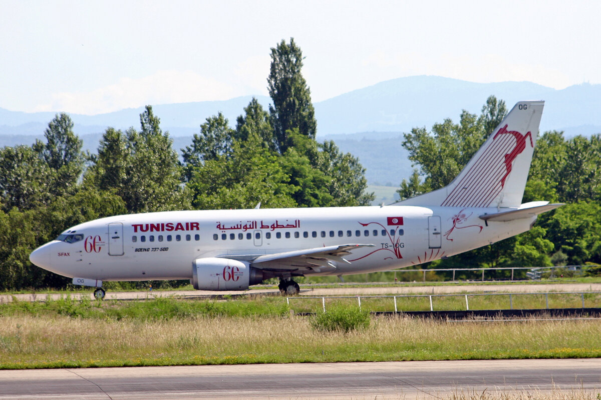Tunisair, TS-IOQ, Boeing B737-6H3, msn: 29501/563,   Bizerte ,  60 ans  Bemalung, 21.Juni 2008, BSL Basel - Mühlhausen, Switzerland.