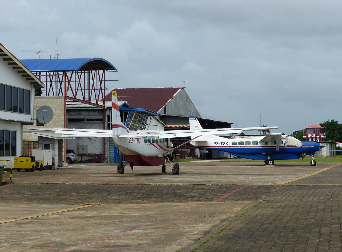 Cessna 208B Grand Caravan, PZ-TBT von GUM AIR und PZ-TSK von Blue Wings Airlines, am Zorg en Hoop Airport Paramaribo (ORG) am 2.6.2017