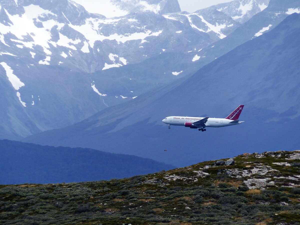 OMNIA AIR INTERNATIONAL, Boeing 767-224, N234AX in Anflug auf Ushuaia am 4.1.2022