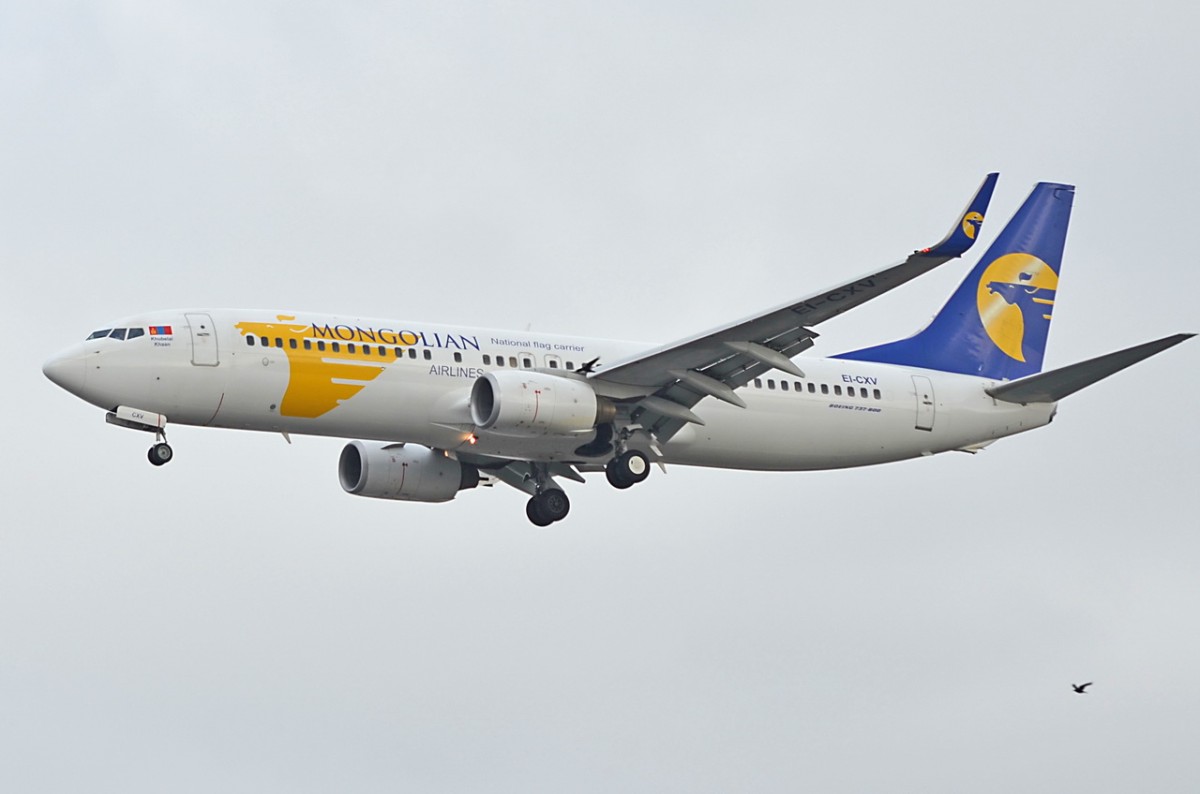 EI-CXV MIAT - Mongolian Airlines Boeing 737-8CX(WL)  Khubelei Khaan    beim Anflug auf Tegel am 05.11.2014
