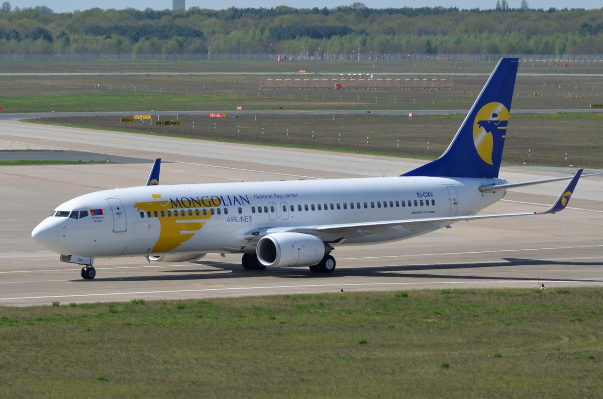 EI-CXV MIAT - Mongolian Airlines Boeing 737-8CX(WL) zum gate in Tegel am 29.04.2015