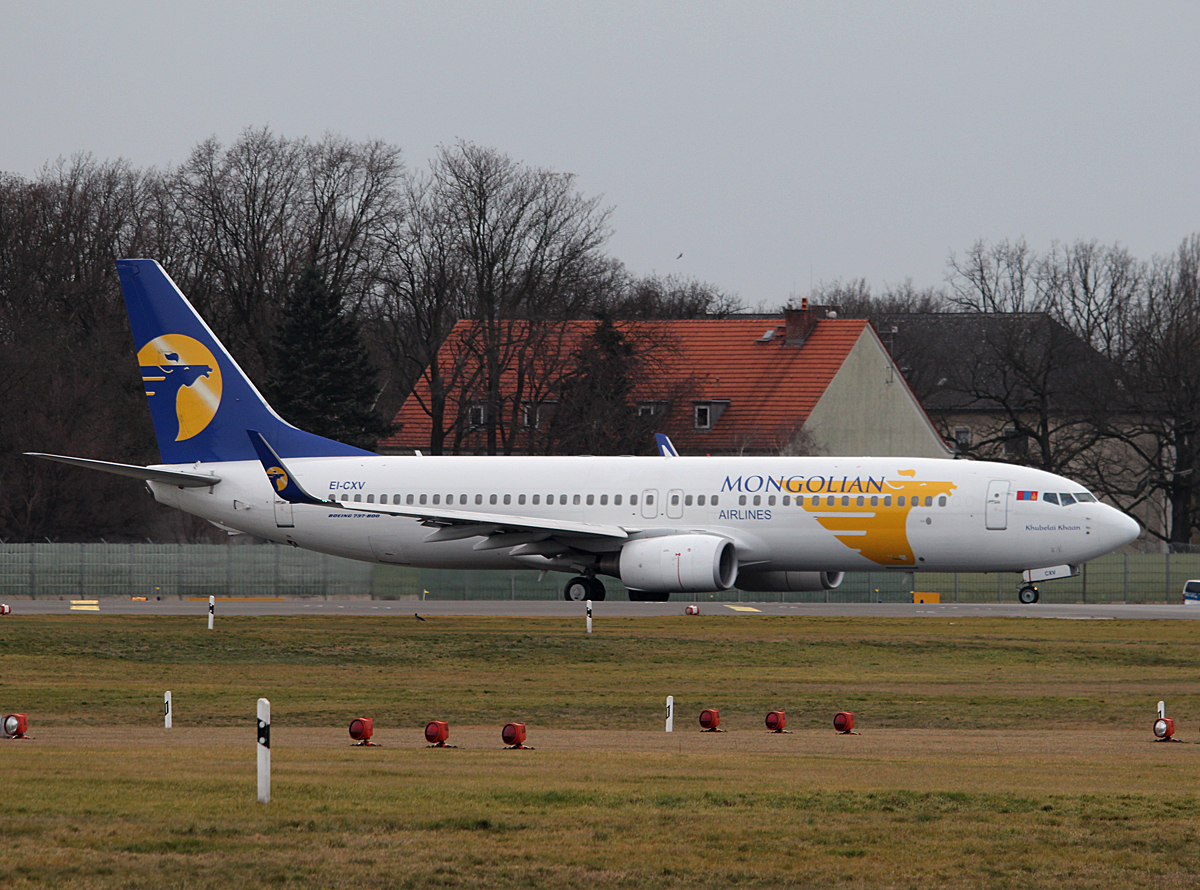EI-CXV MIAT - Mongolian Airlines Boeing 737-8CX(WL)  Khubelai Khaan   am 25.02.2015 in Tegel beim Anflug