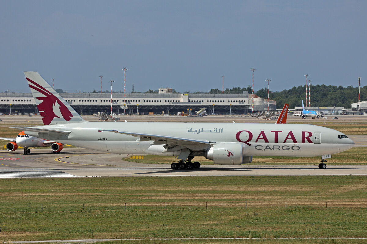 Qatar Airways, A7-BFX, Boeing B777-F, msn: 66870/1664, 11.Juli 2025, MXP Milano Malpensa, Italy.