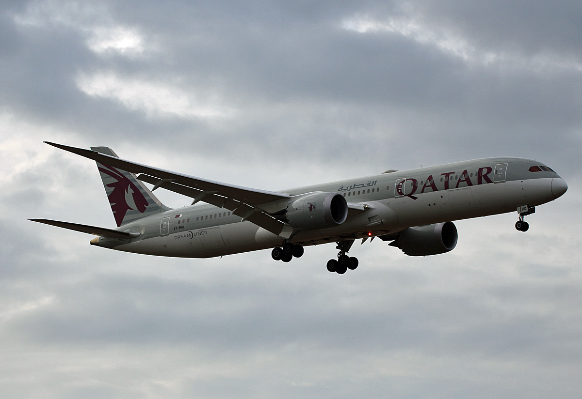 Qatar Airways Boeing 787-9 Dreamliner A7-BHH bei der Landung in Frankfurt 7.8.2025