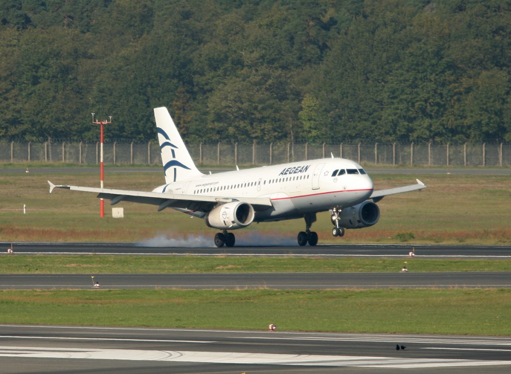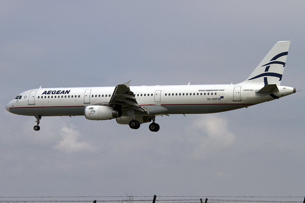 Aegean Airlines, SX-DVU "Pheidias", Airbus A 320-200 (Akropolis-Sticker auf der linken Seite), 20.06.2011, DUS-EDDL, Düsseldorf, Germany