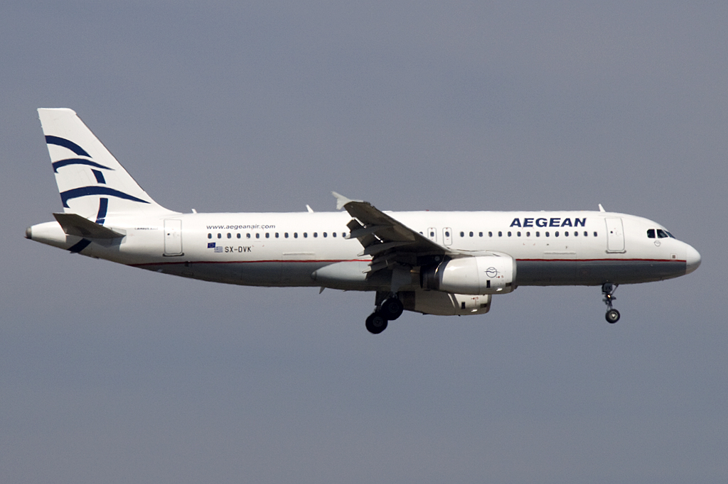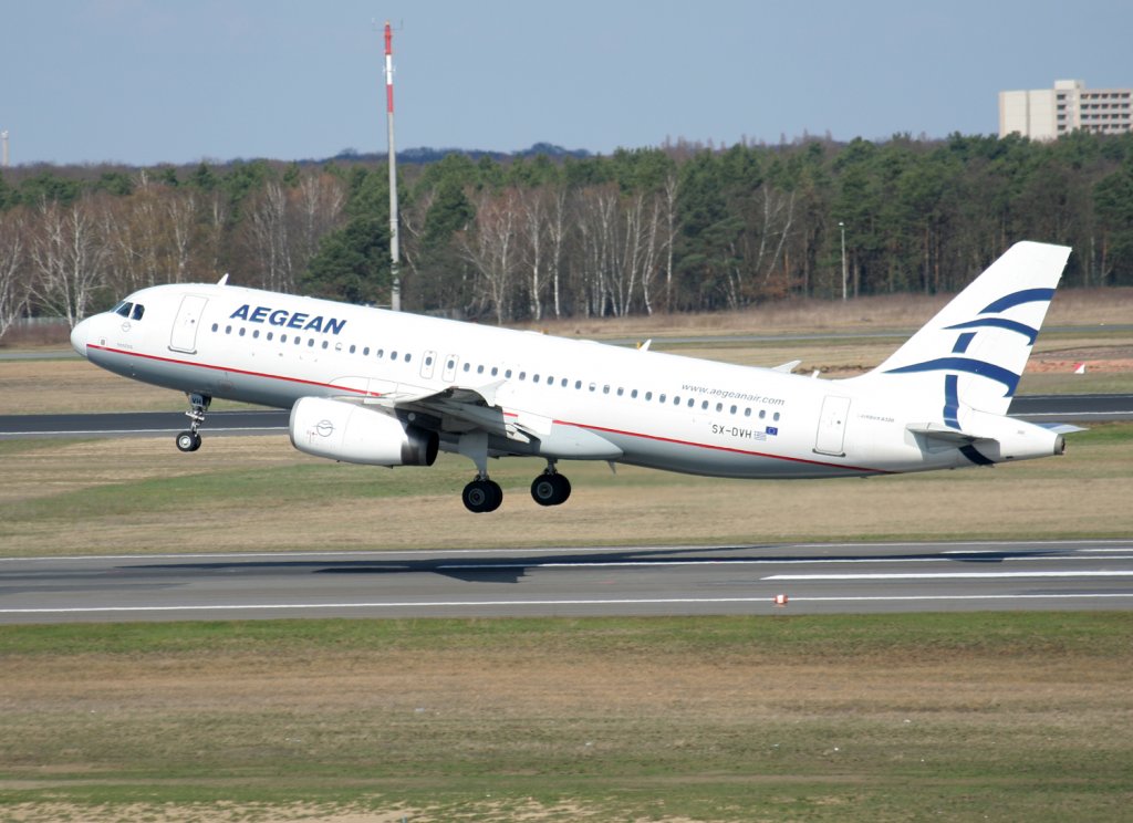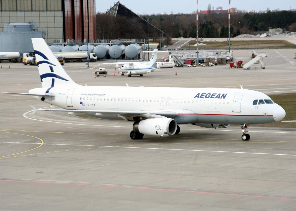 Aegean A 320-232 SX-DVK bei der Ankunft auf dem Flughafen Berlin-Tegel am 27.02.2010
