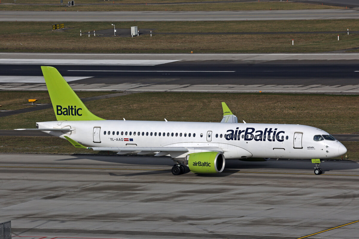 Air Baltic, YL-AAO, Airbus A220-371, msn: 55050, 16.Januar 2024, ZRH Zürich, Switzerland.