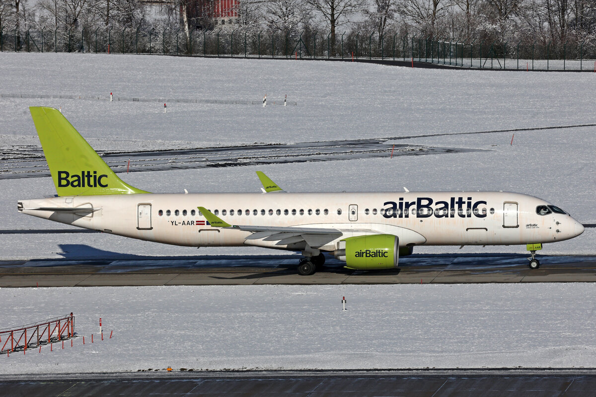 Air Baltic, YL-AAR, Airbus A220-371, msn: 55053, 19.Januar 2024, ZRH Zürich, Switzerland.