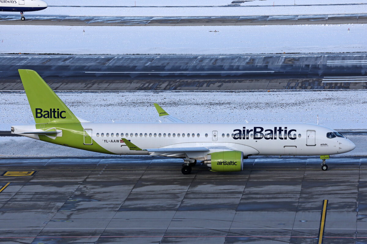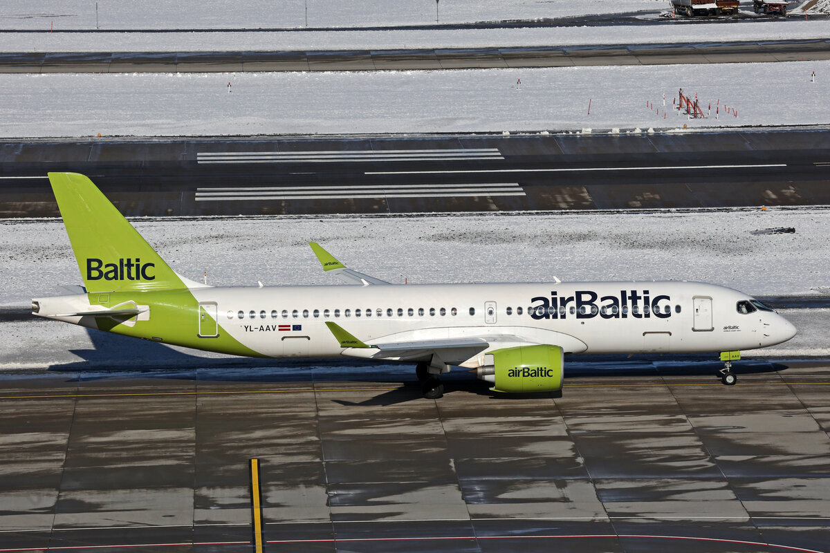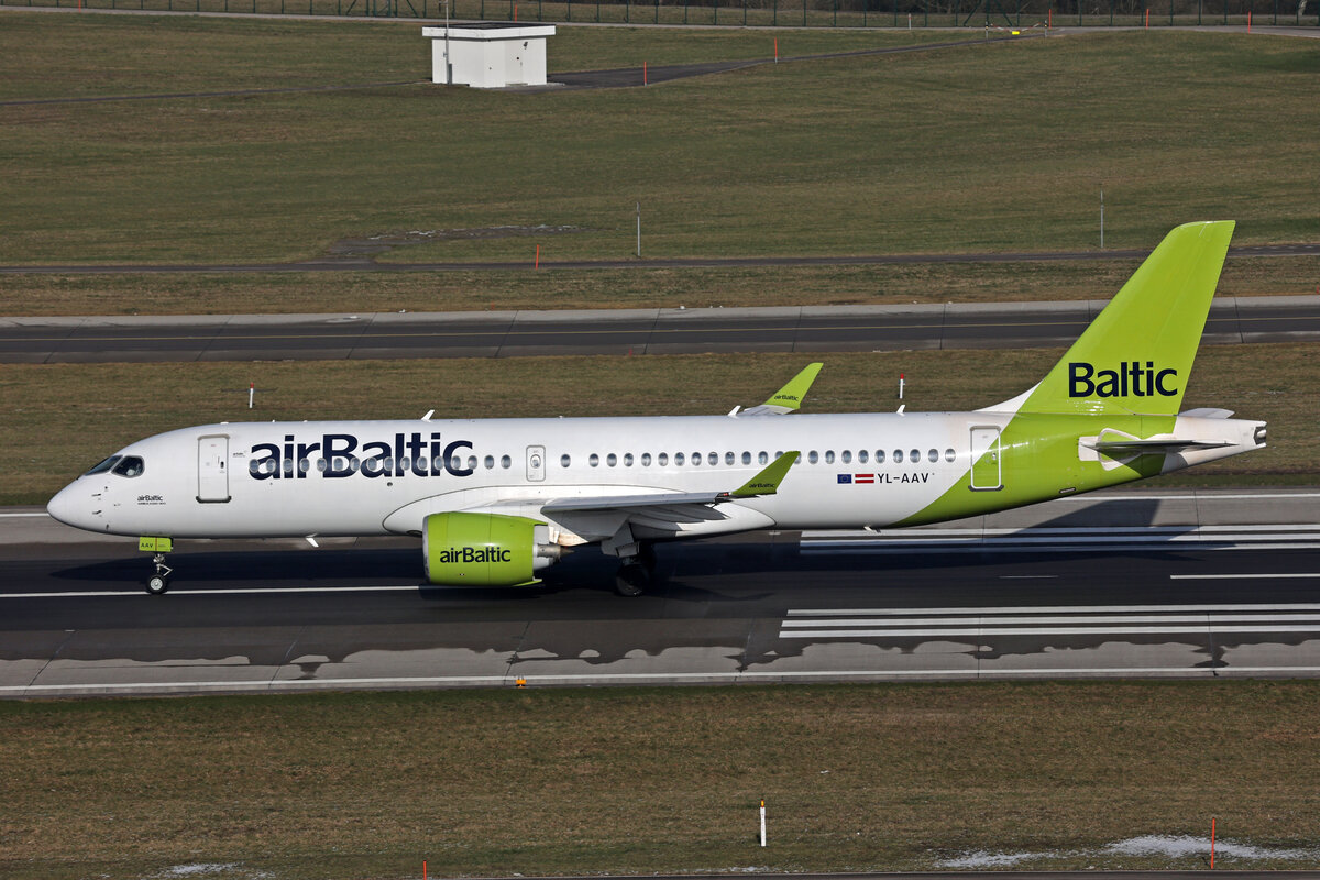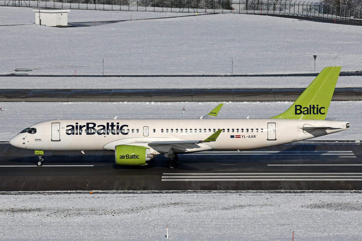 Air Baltic, YL-AAV, Airbus A220-371, msn: 55071, 19.Januar 2024, ZRH Zürich, Switzerland.