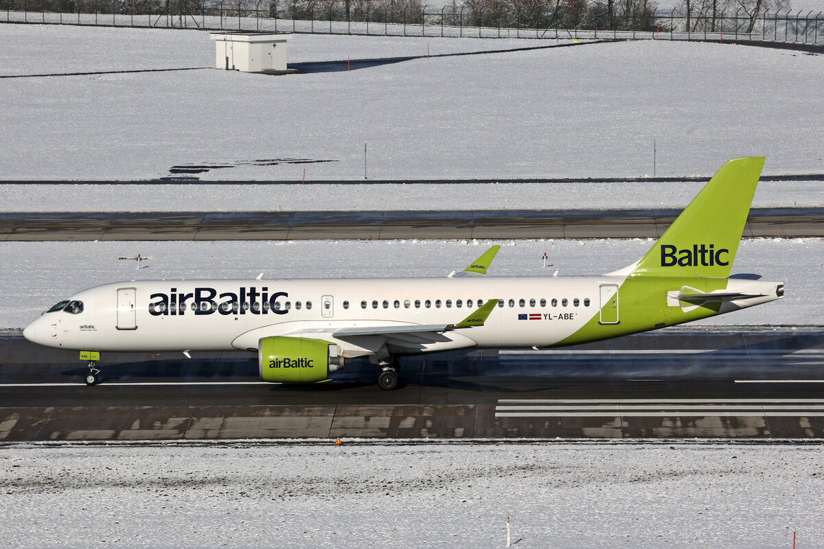 Air Baltic, YL-ABD, Airbus A220-371, msn: 55129, 25.November 2023, 29.November 2023, ZRH Zürich, Switzerland.