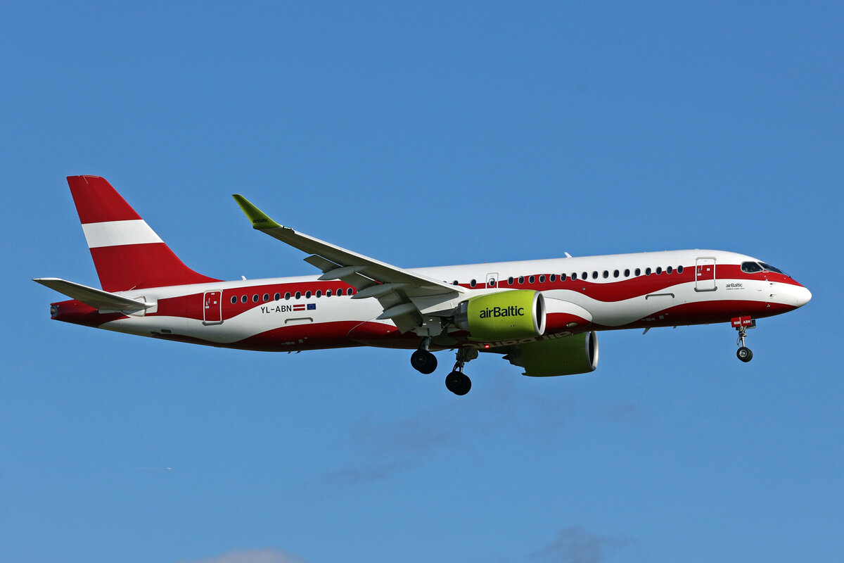 Air Baltic, YL-ABN, Airbus A220-371, msn: 55215, "Latvija", 25.November 2023, ZRH Zürich, Switzerland.