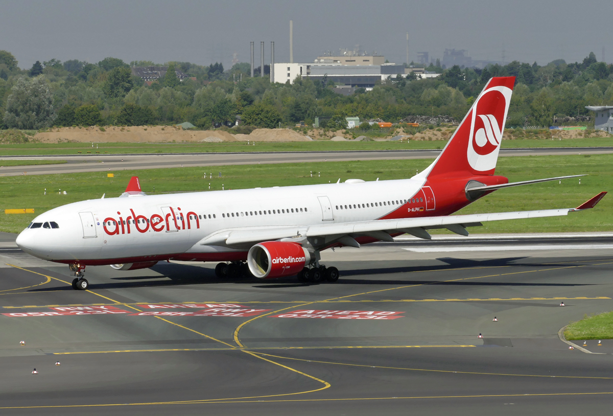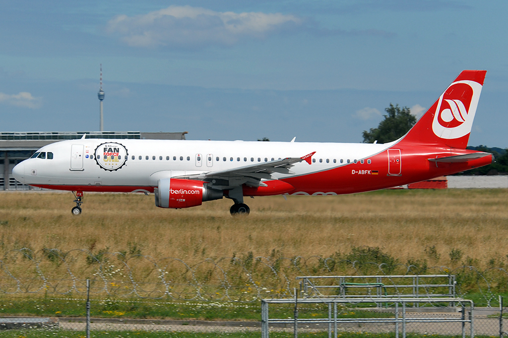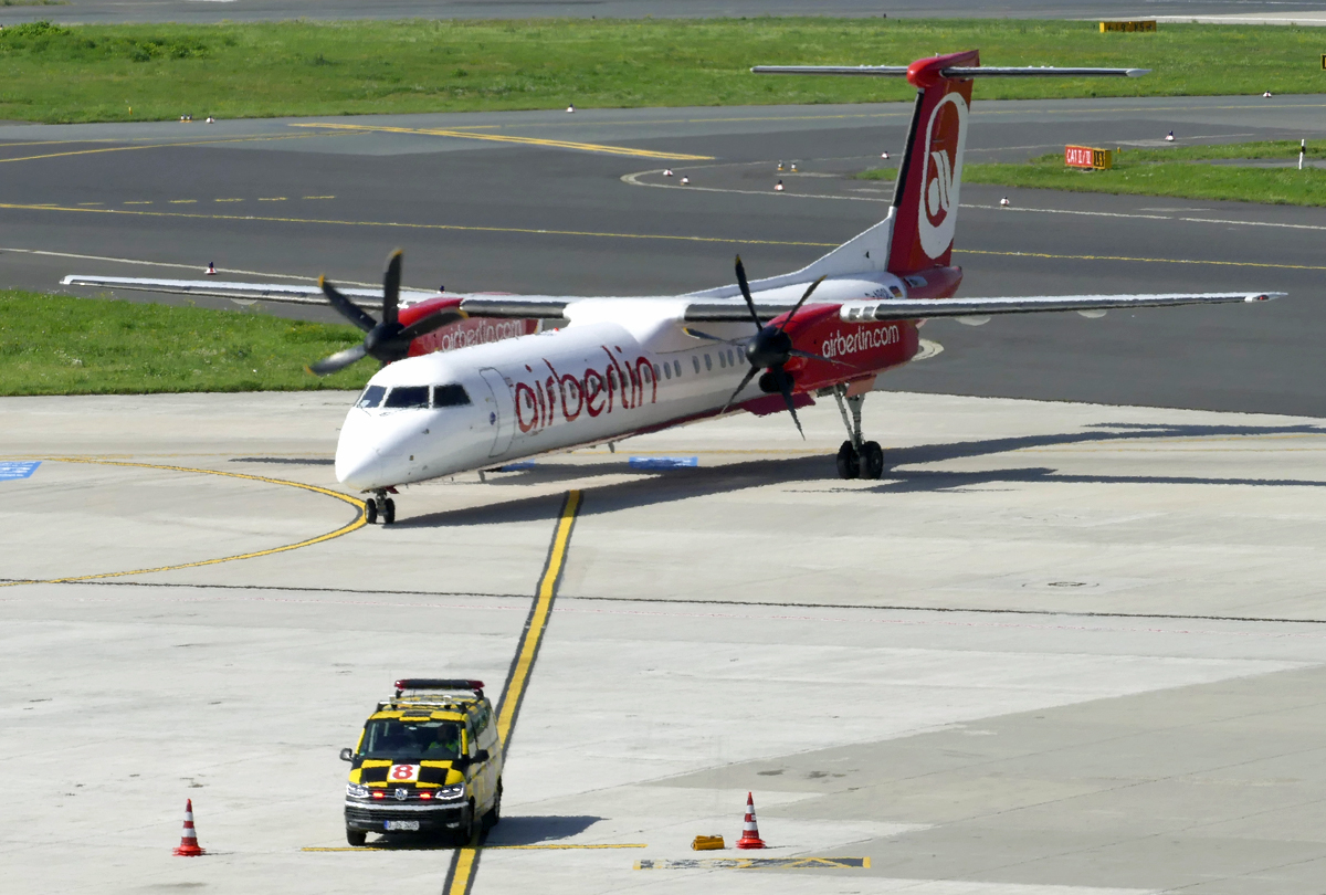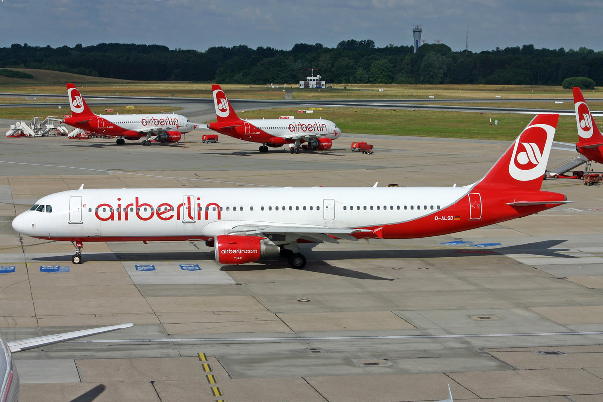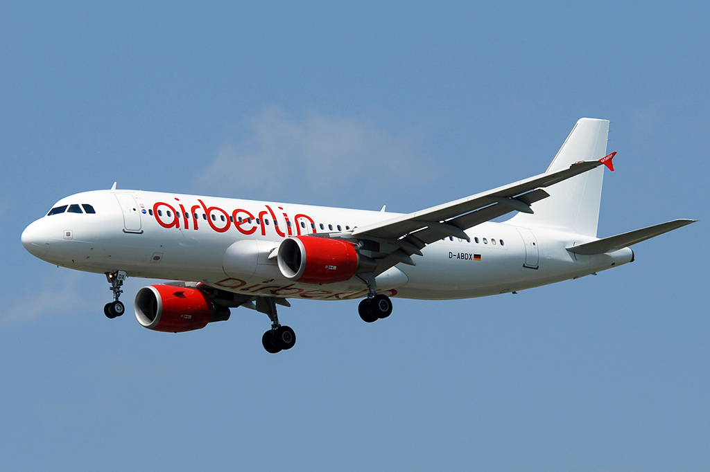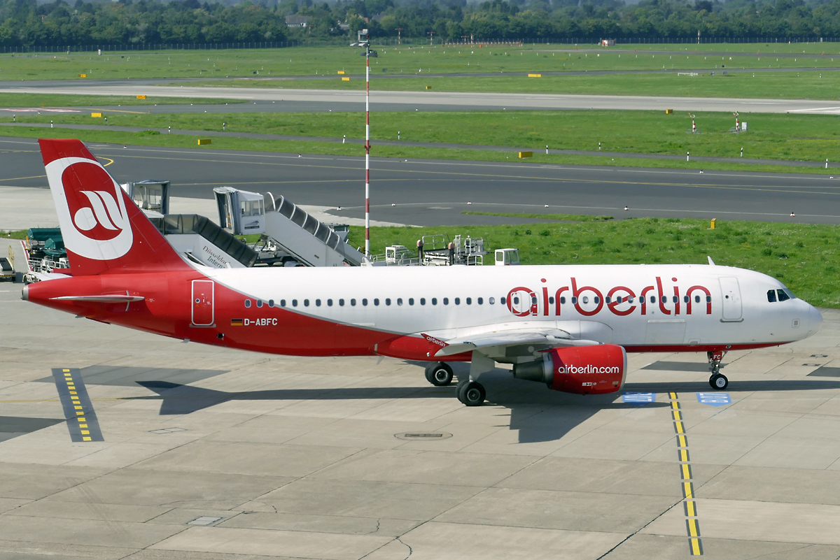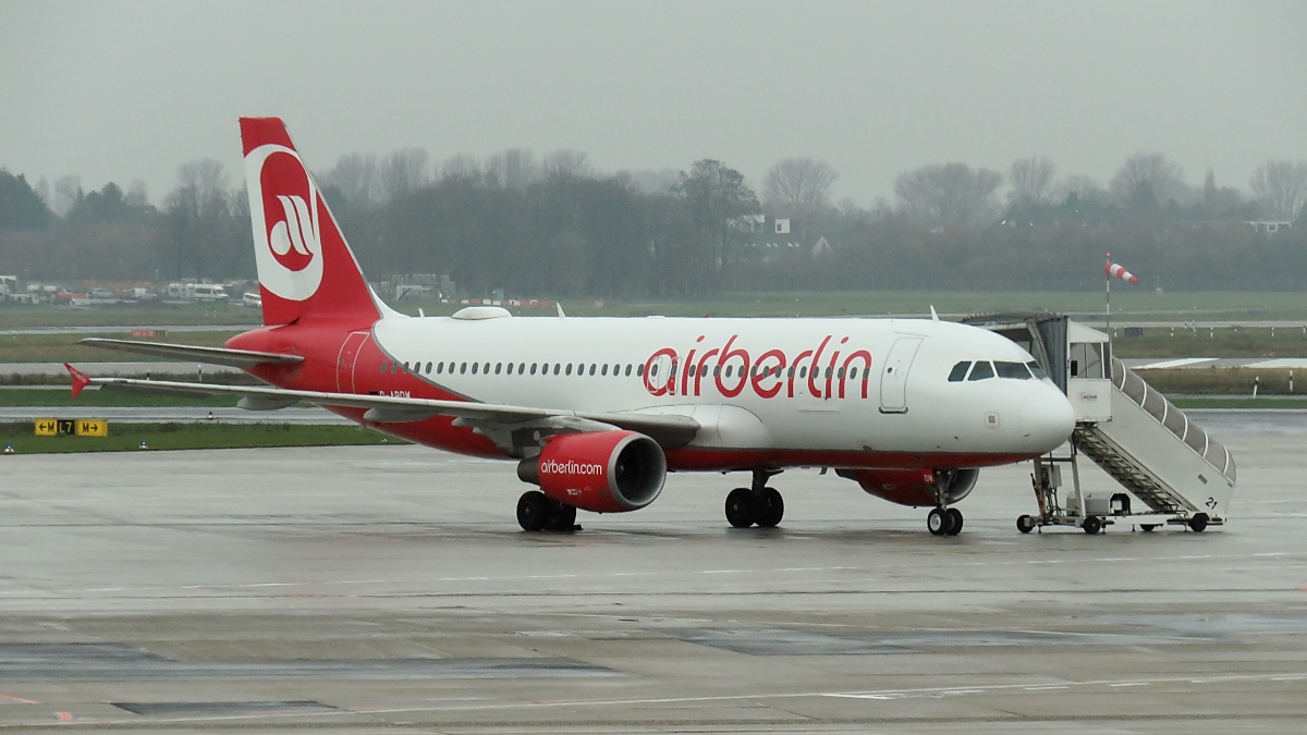 Eine einsame Maschine der Air Berlin, die D-ABDW - Airbus A320-214, steht nach der Pleite auf dem Vorfeld des Flughafens Düsseldorf, 4.12.17
