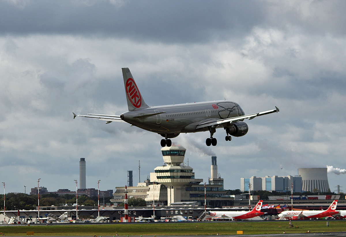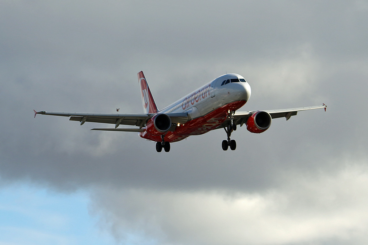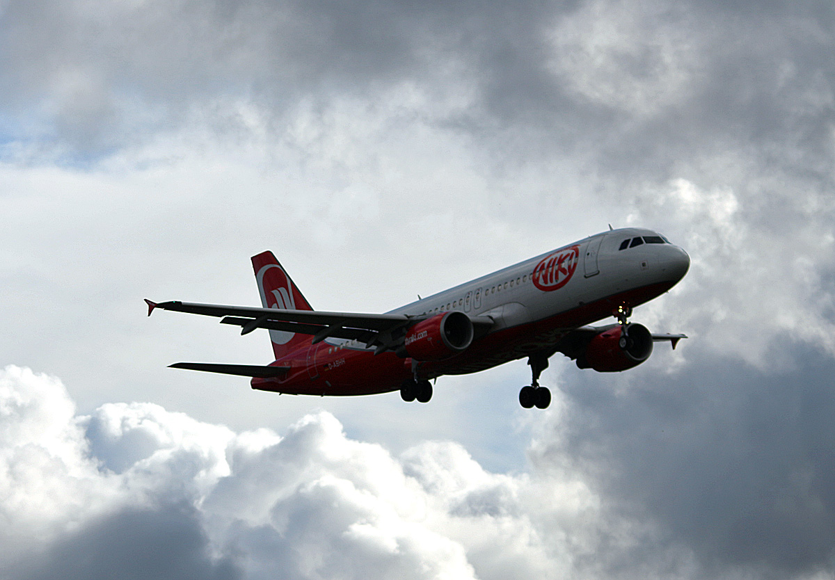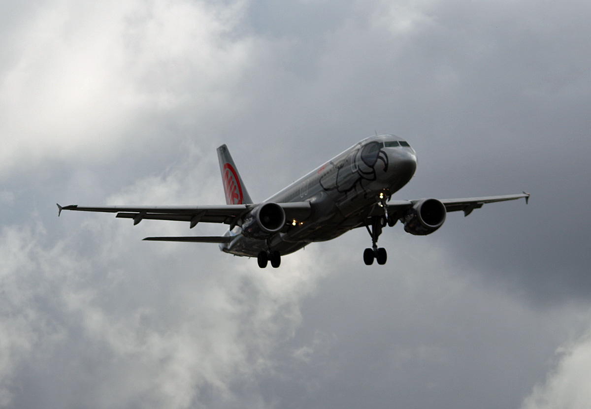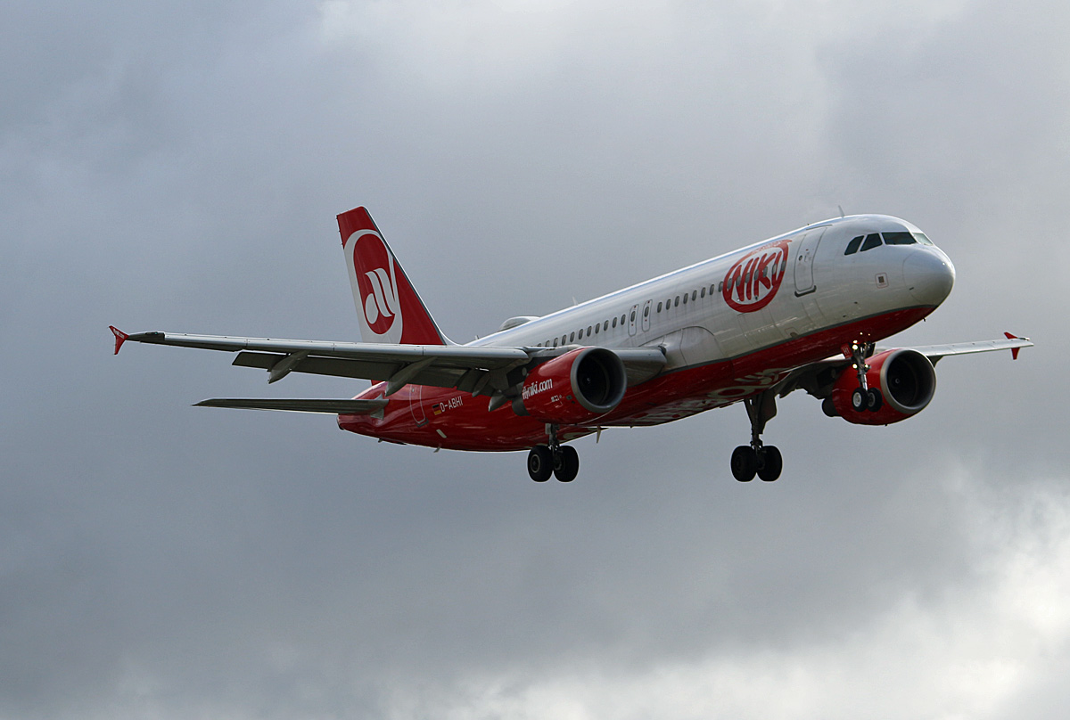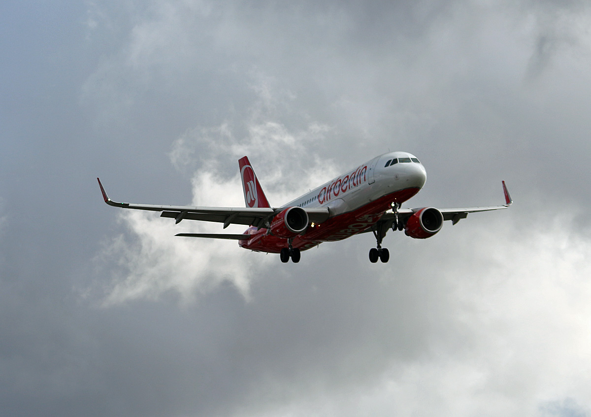 Eine einsame Maschine der Air Berlin, die D-ABDW - Airbus A320-214, steht nach der Pleite auf dem Vorfeld des Flughafens Düsseldorf, 4.12.17