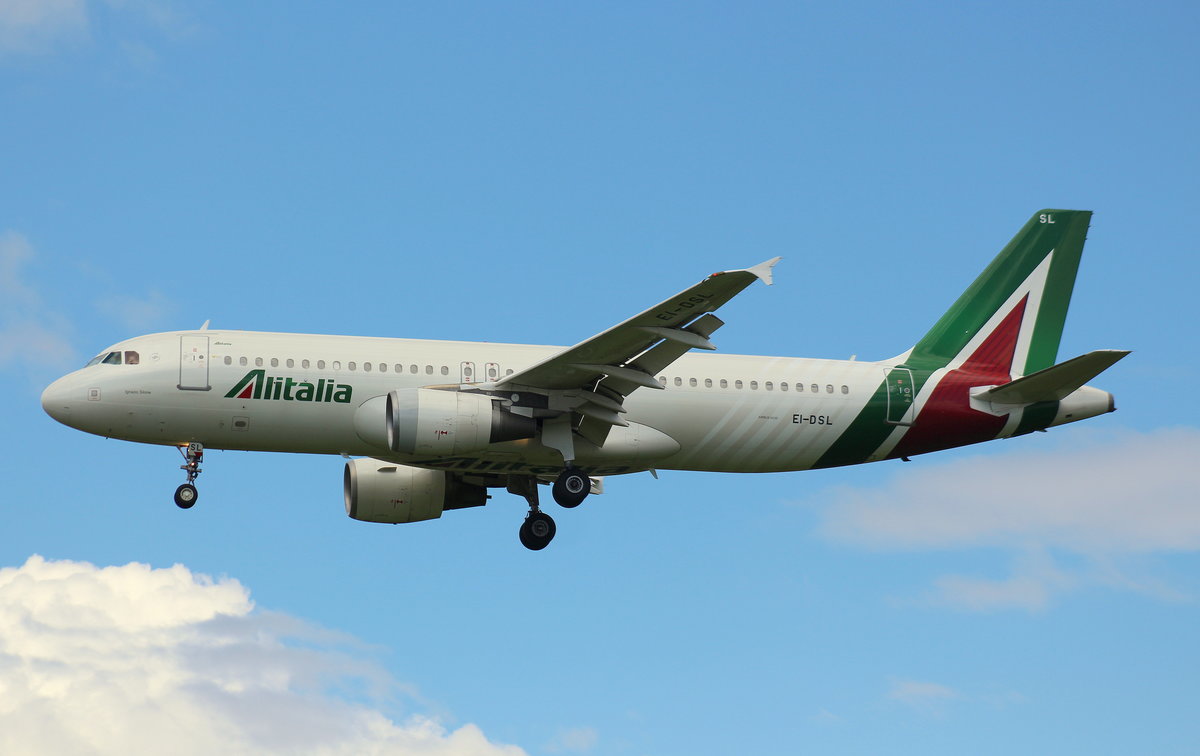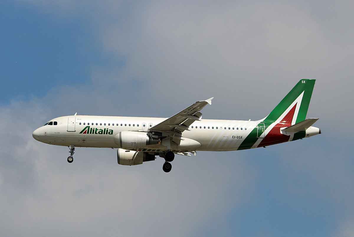 Der Alitalia Airbus A320 EI-EIA vor der Landung in Hamburg Fuhlsbüttel am 04.07.17