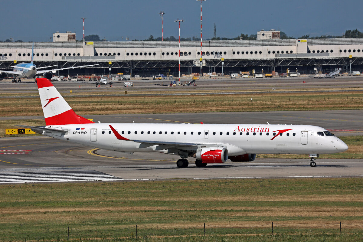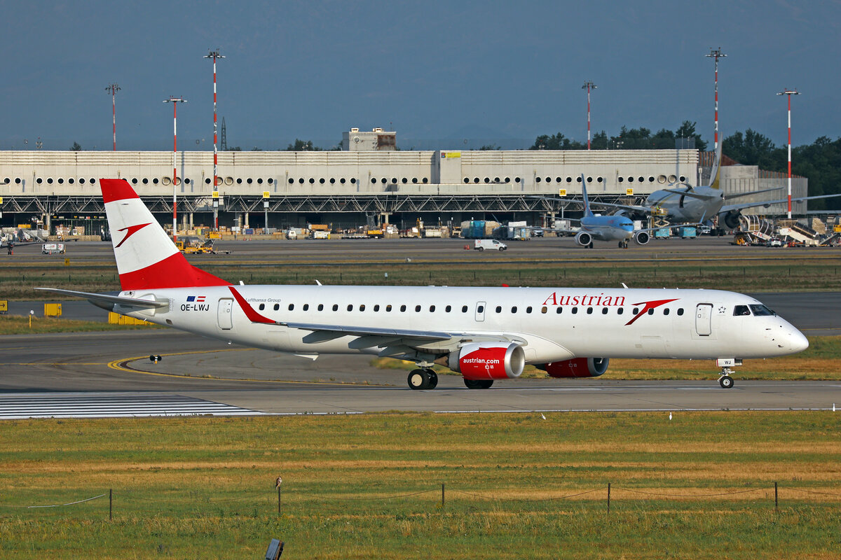 Austrian Airlines, OE-LWJ, Embraer ERJ-195LR, msn: 19000507, 03.Juli 2025, MXP Milano Malpensa, Italy.
