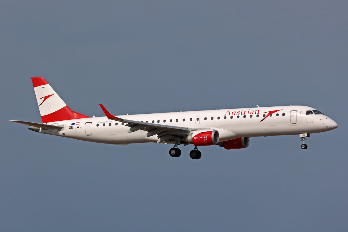 Austrian Airlines, OE-LWL, Embraer ERJ-195LR, msn: 19000532, "City of Prague", 02.Juli 2025, MXP Milano Malpensa, Italy.