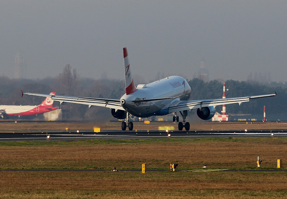 Austrian Airlines [operated by Air Berlin] Airbus A320-200 D-ABZA am Morgen des 27.05.2017 im Anflug auf Düsseldorf.