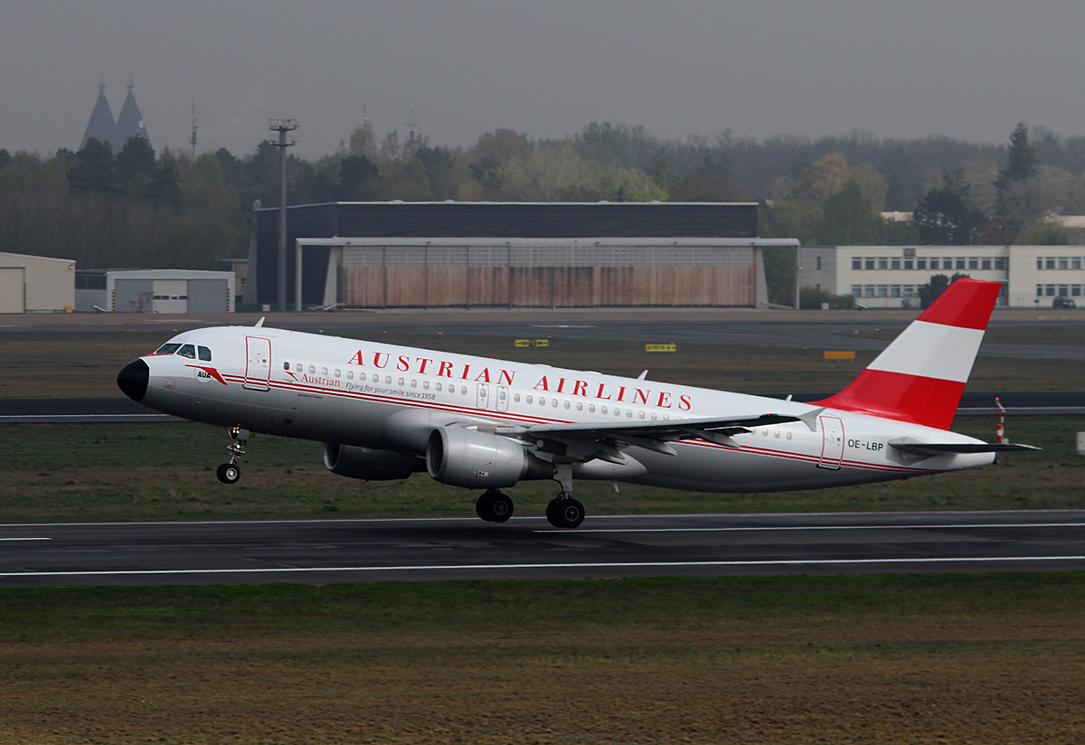Austrian Airlines A 320-214 OE-LBP bei der Landung in Berlin-Tegel am 22.02.2014