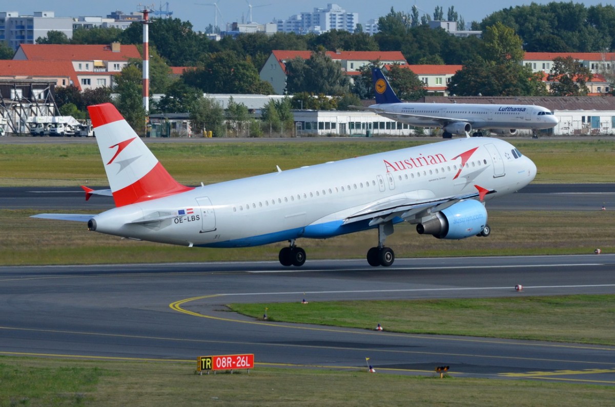 Austrian Airlines A 320-214 OE-LBJ bei der Landung in Berlin-Tegel am 08.03.2014