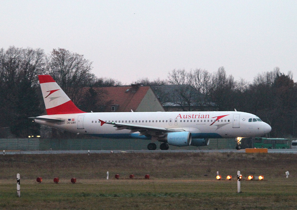 Austrian Airlines A 320-214 OE-LBV kurz vor dem Start in Berlin-Tegel am 01.12.2012