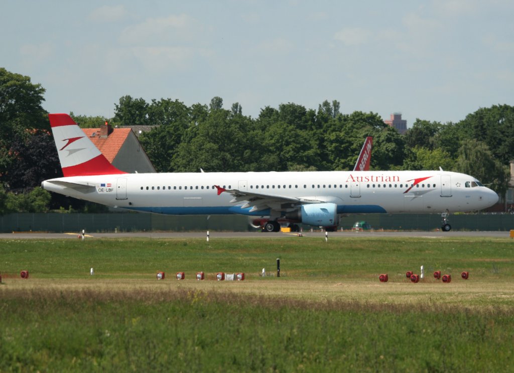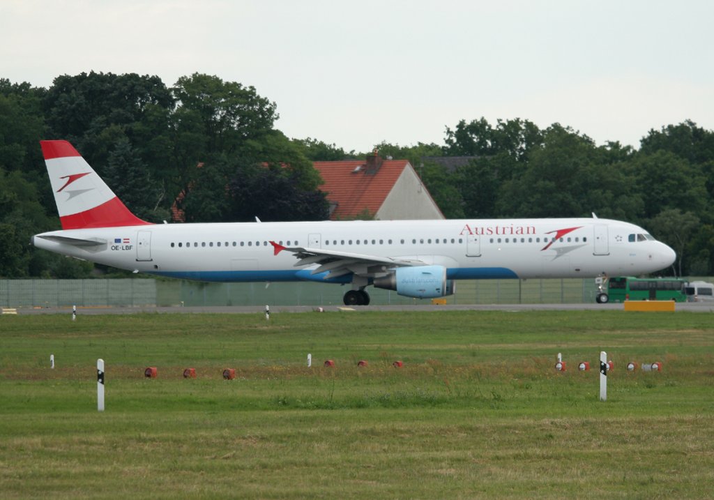Austrian Airlines A 321-211 OE-LBF kurz vor dem Start in Berlin-Tegel am 09.06.2012