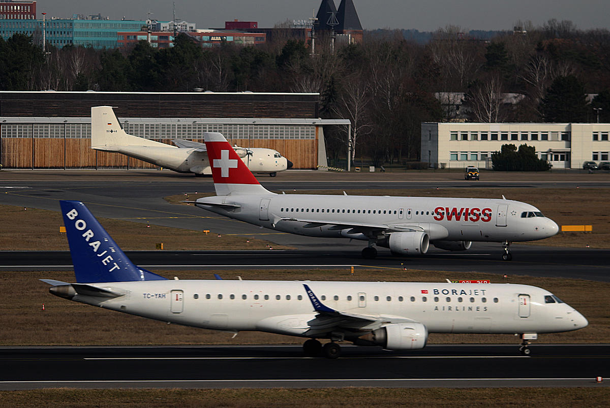 BoraJet, ERJ-190-100LR, TC-YAH, Swiss, Airbus A 320-214, HB-IJI, Germany Air Force, C-160D, 50+48, TXL, 04.03.2017
