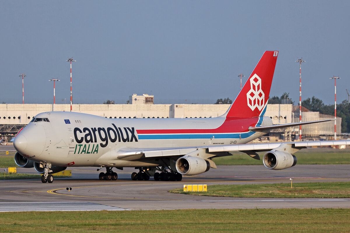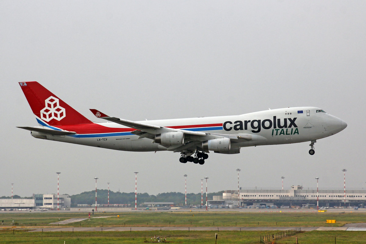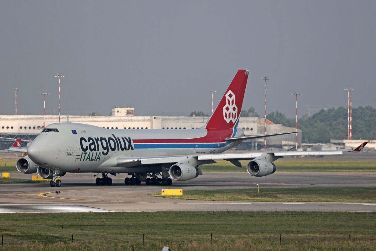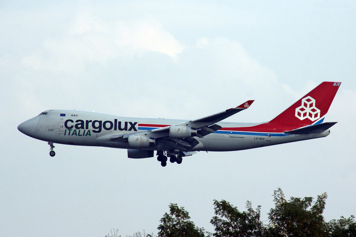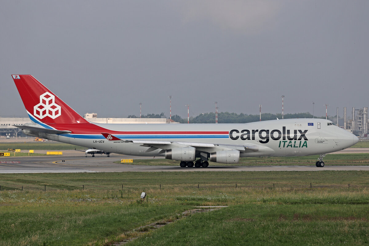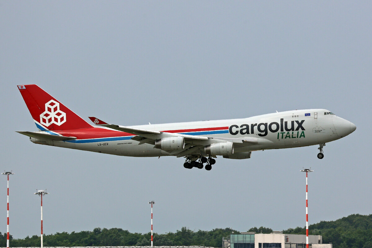 LX-YCV, Boeing 747-4R7F, von Cargolux Italia hat soeben vom Flughafen Findel abgehoben und fliegt im Steigflug über die Stadt Luxemburg hinweg. 19.08.2020 De Rond Hans und Jeanny