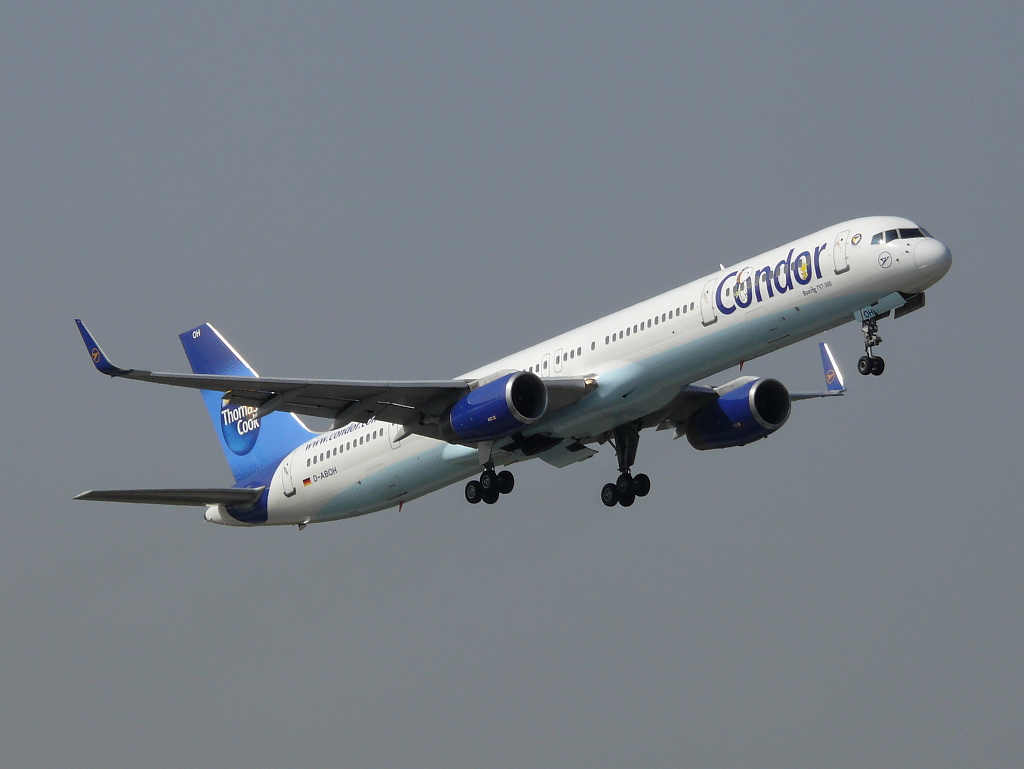 Die Condor Boeing 757-300 D-ABOA beim Start in Hamburg Fuhlsbüttel am 10.04.11