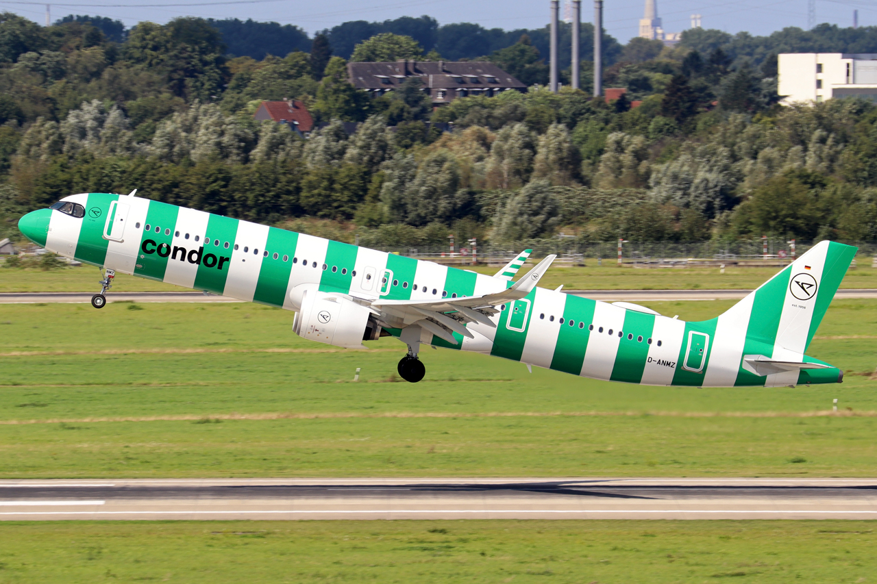 Condor Airbus A321-271NX D-ANMZ beim Start in Düsseldorf 24.8.2024