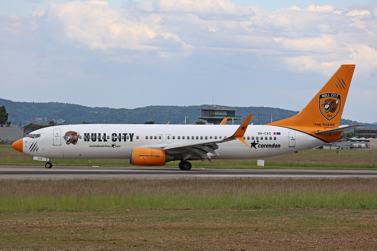 Corendon Airlines Europe, 9H-CXG, Boeing B737-8K5, msn: 37254/3586, "Hull City The Tigers", 17.Mai 2025, BSL Basel - Mühlhausen, Switzerland.